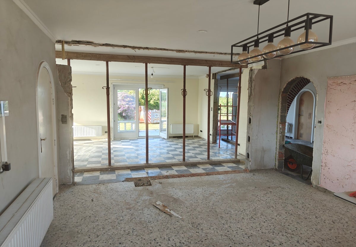 Na de afbraak werd het terrein zorgvuldig genivelleerd en voorbereid voor de aanleg van een nieuw gazon en terras.
